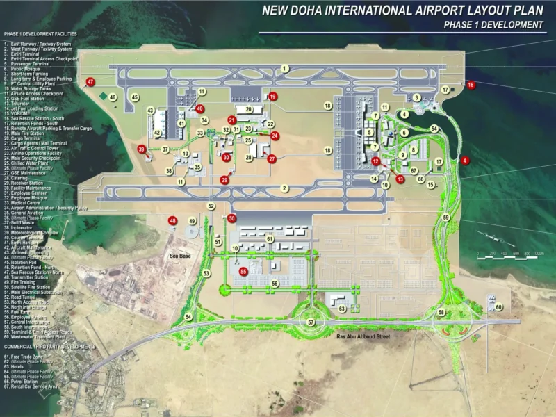 A site spanning approximately 1,700 hectares, situated east of the current airport, has been selected for the development of the New Doha International Airport. The construction of the airport necessitated ...