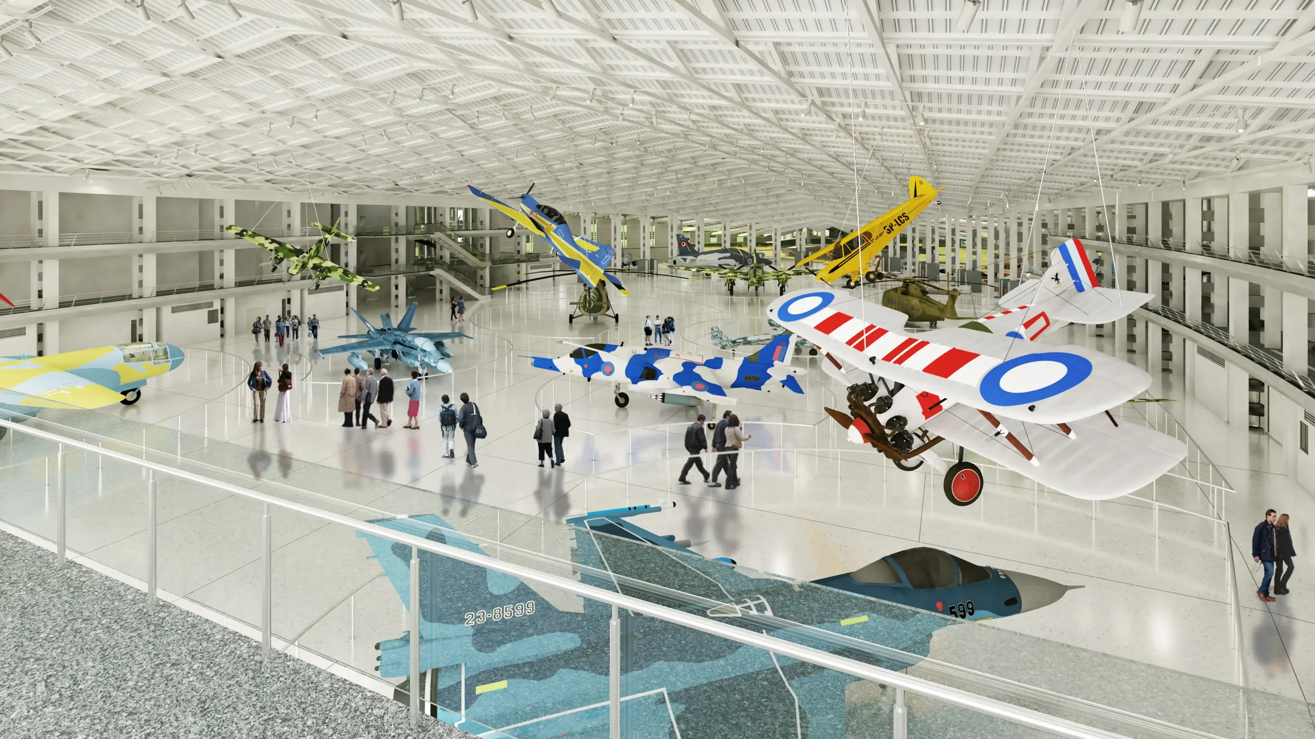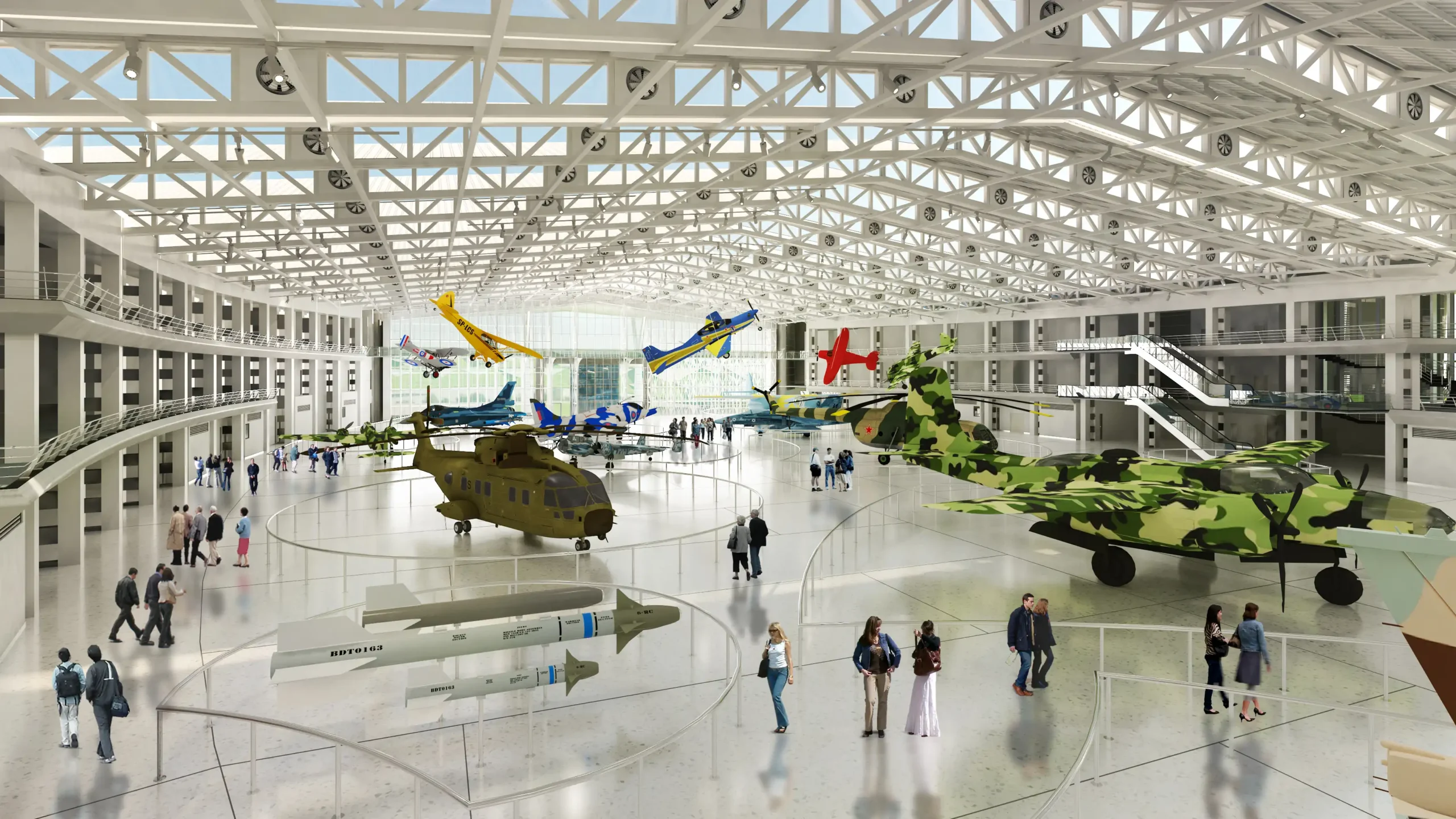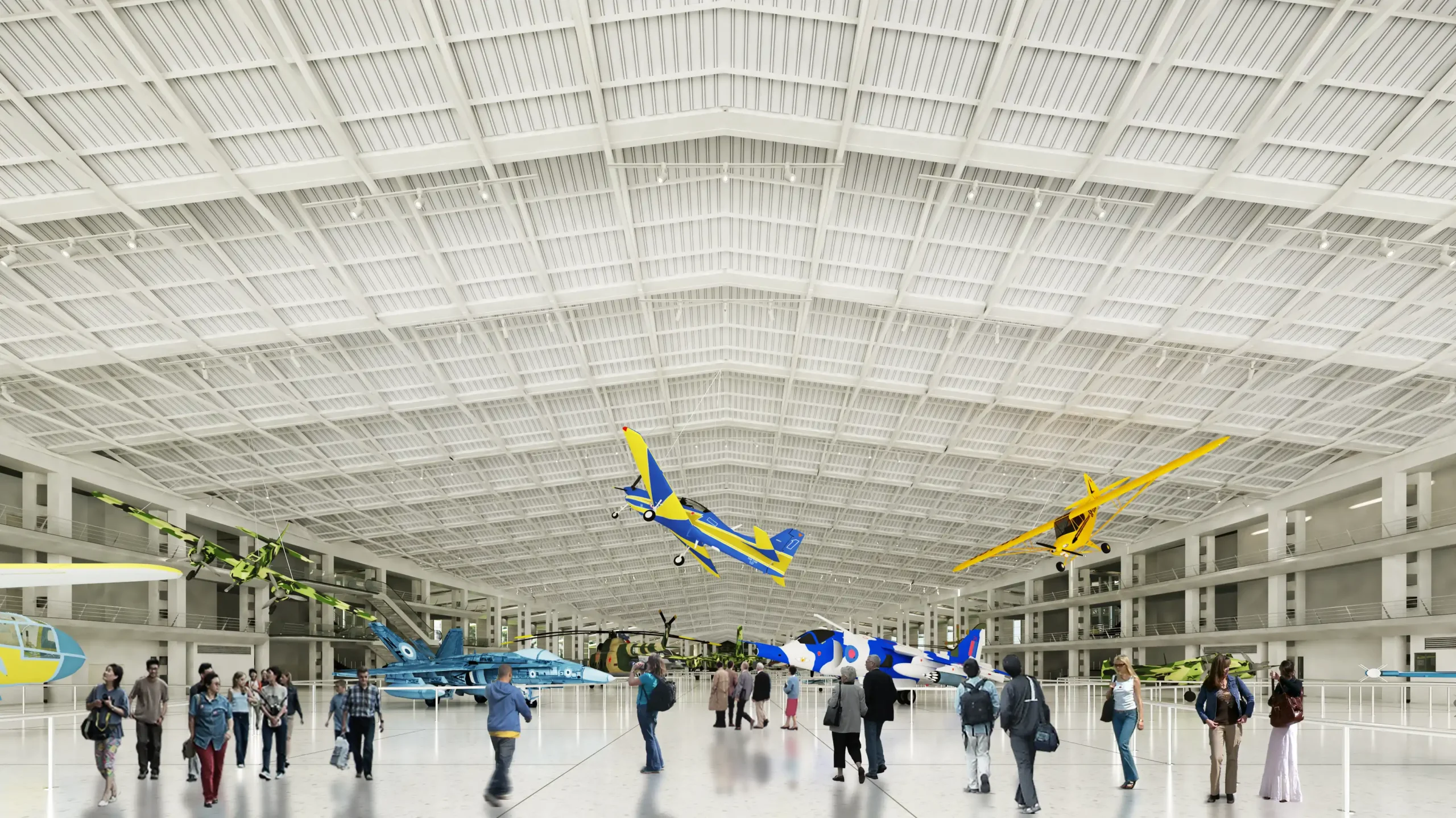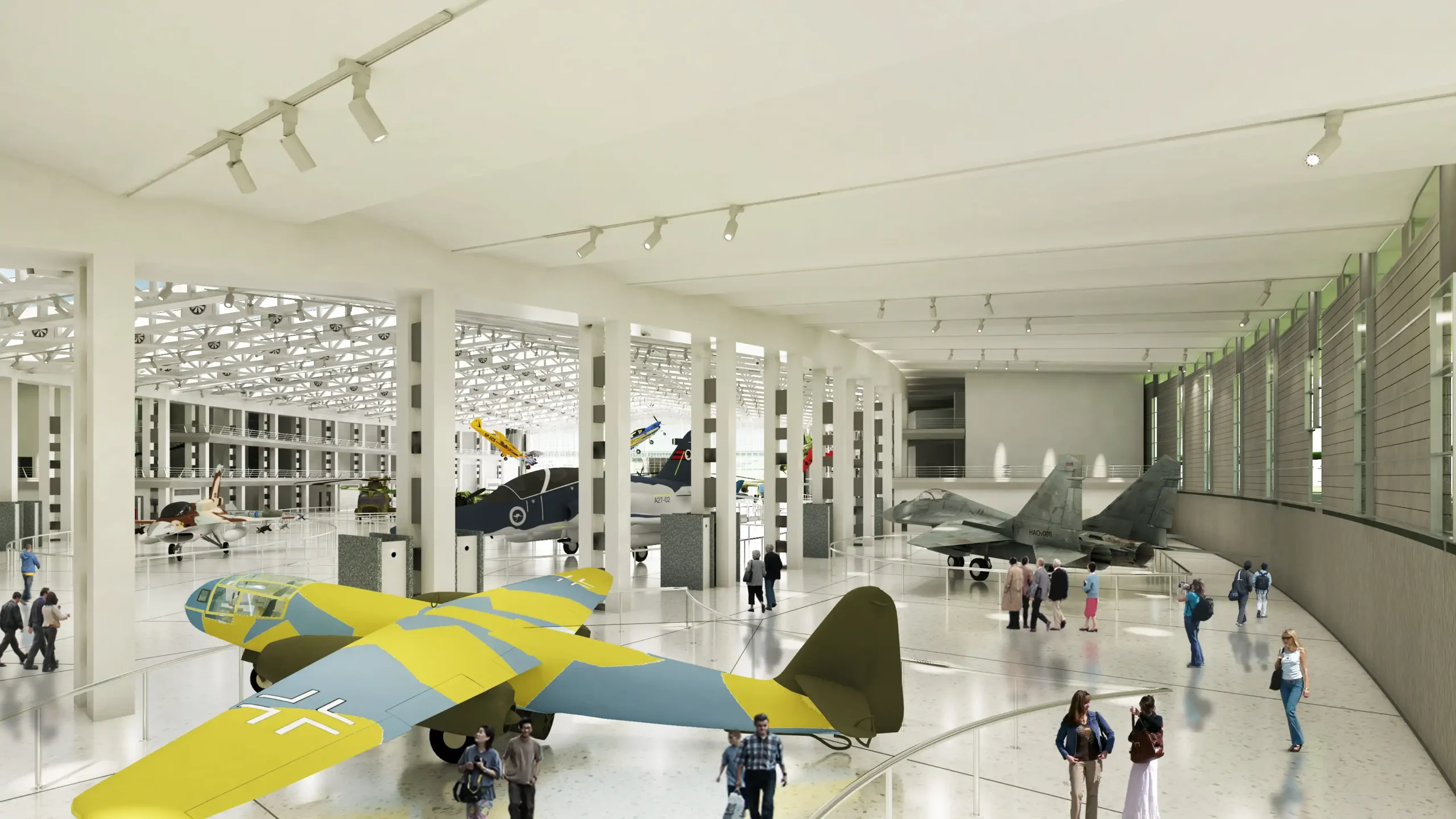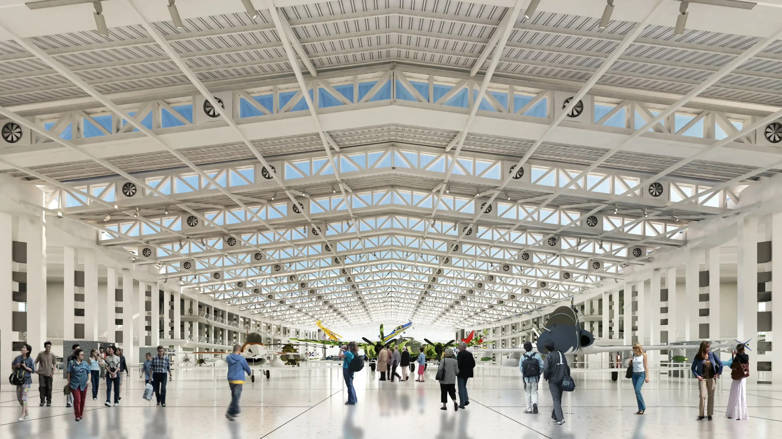 At the heart of the building lies a grand central atrium, meticulously designed to showcase the rich history of aviation in the Indian Air Force. A collection of 50 exceptional aircraft will be suspended at various levels within this expansive and naturally illuminated space. The north light roof of the atrium has been carefully designed to provide cool, indirect light that eliminates glare and enhances the interior atmosphere.