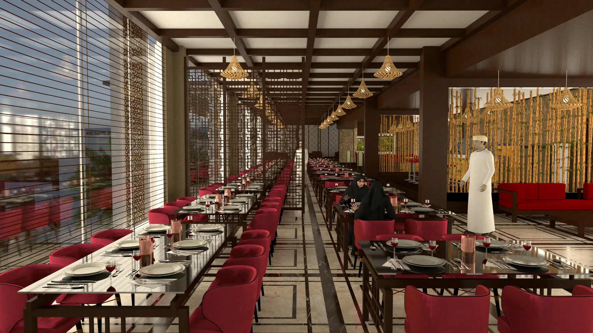 Nestled on the scenic northern coast of Oman, this Club enjoys a picturesque setting along a 200-meter long beachfront. The design of the Club is carefully crafted to harmonize with its natural surroundings, while offering top-notch amenities for accommodation, dining, recreation, and sports. The landscaped gardens, kids’ play areas, and pool decks enhance the overall experience. With a built-up area of 16,230 square meters, the architecture pays homage to traditional Omani design, seamlessly blending it with modern and cutting-edge features.
