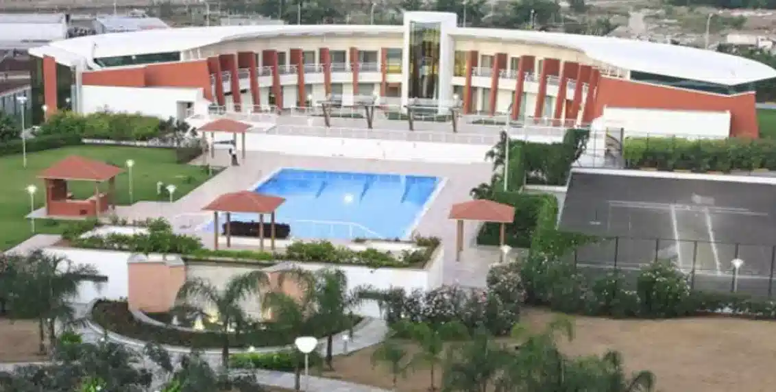 The centrally located clubhouse at SP Infocity IT complex takes the shape of a horseshoe, creating a unique and captivating architectural design. Situated at the heart of the complex, this fully equipped clubhouse offers a range of amenities for the residents and visitors.
