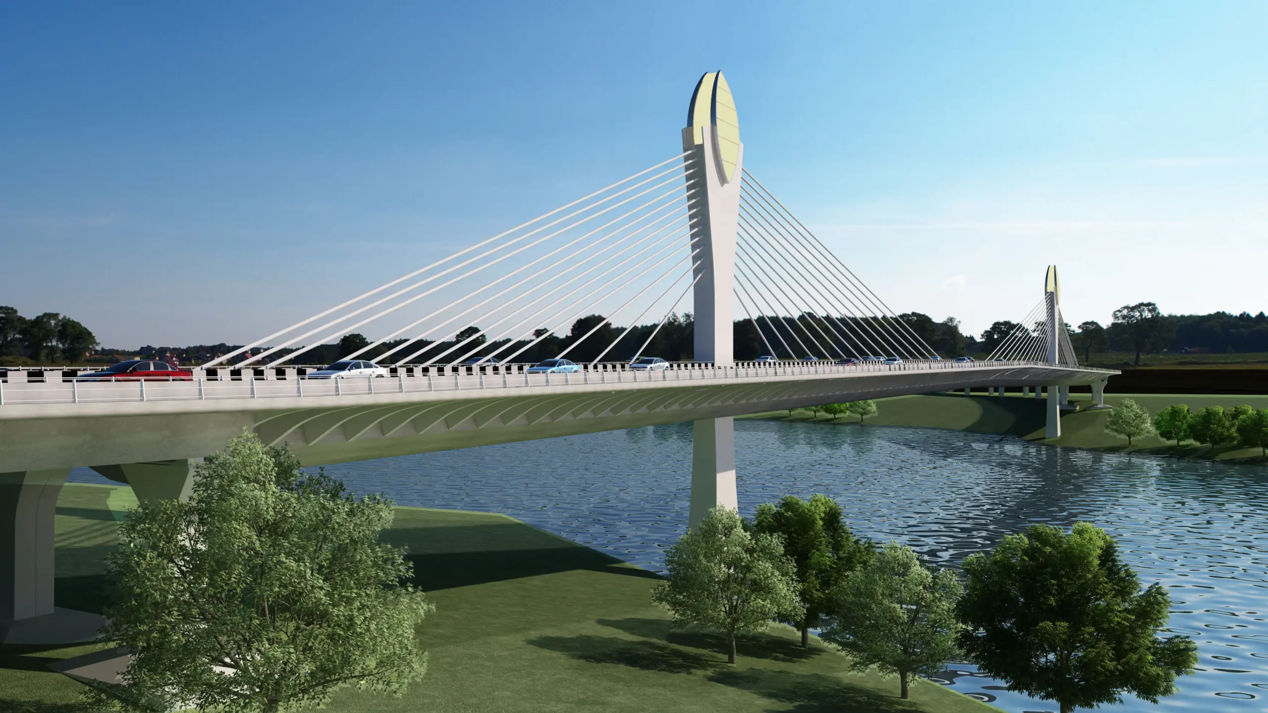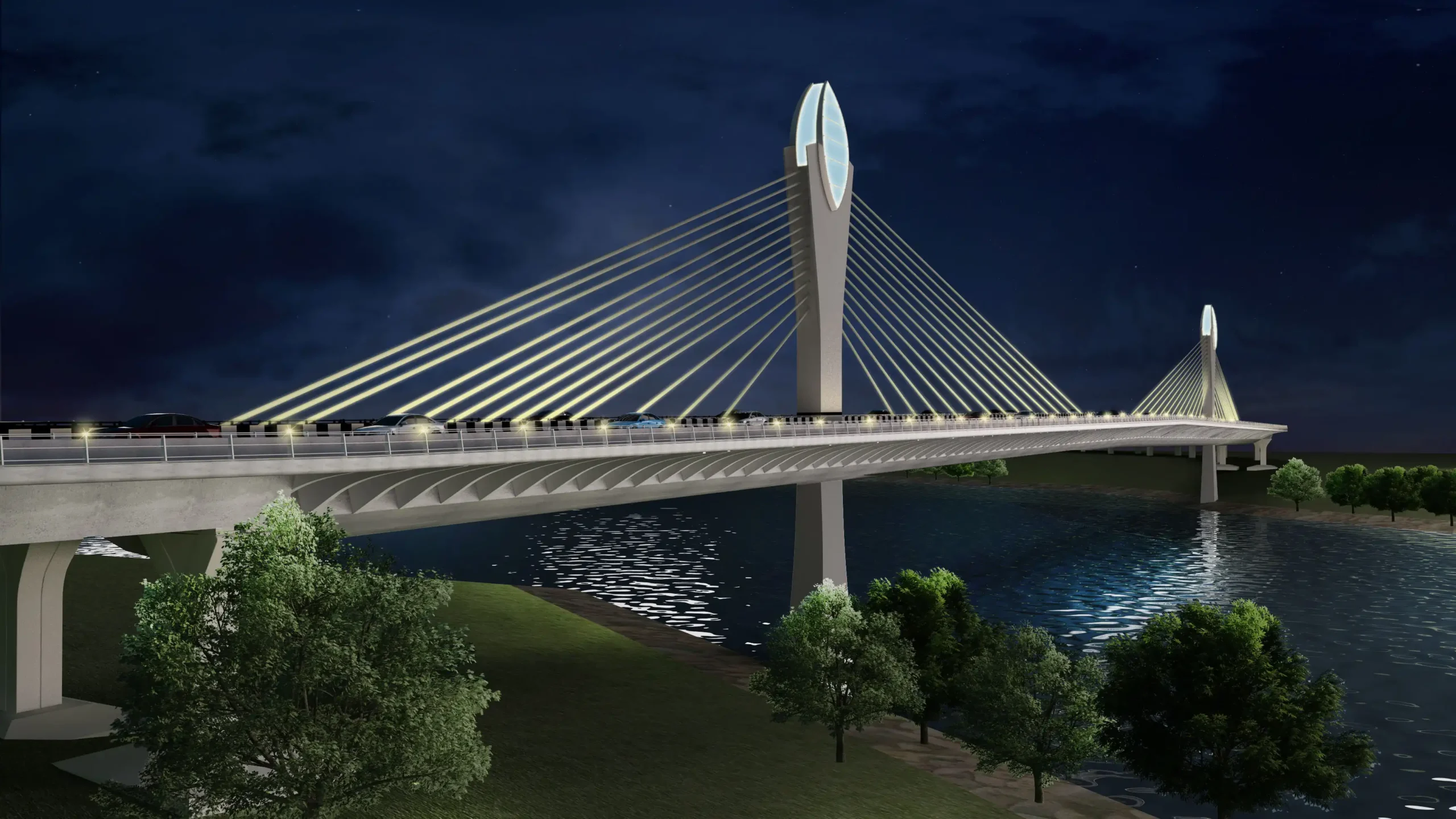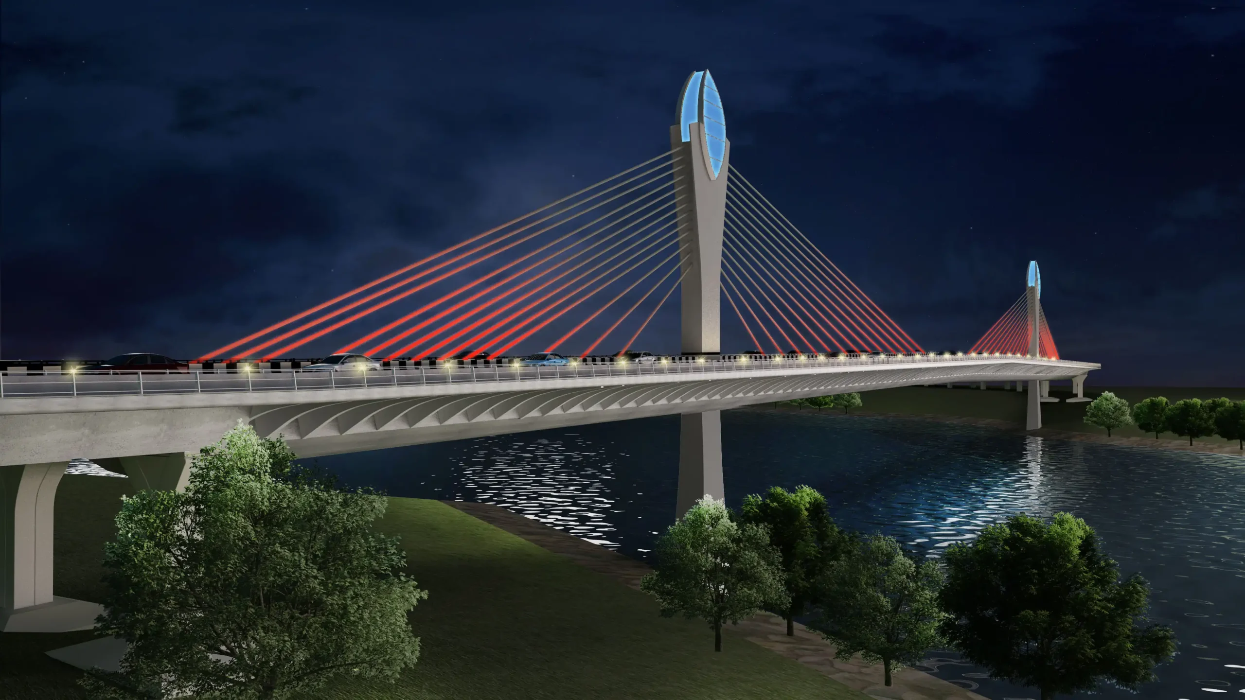 Designed to accommodate 3+3 lanes of traffic in both directions, the bridge features a spacious deck with an overall width of 25.960 meters. The bridge’s structure consists of a single plane of cables and integral pylons. Its superstructure takes on a unique fish belly shape, providing a wider deck for enhanced functionality and aesthetics.