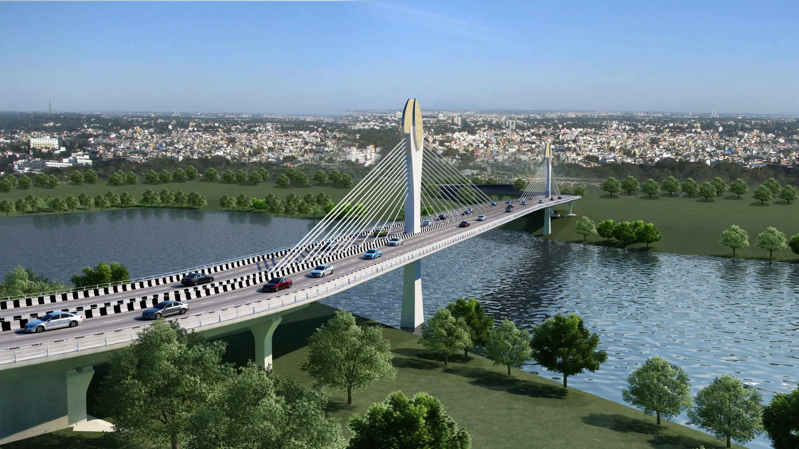 This remarkable bridge spans over the existing Durgam Cheruvu Lake, boasting an impressive main span of 233.85 meters. It holds the distinction of being the longest main span Extradosed Bridge in India and ranks among the top 10 longest main span Extradosed Bridges worldwide. Additionally, it holds the record for being the world’s longest main span precast segmental concrete Extradosed Bridge.