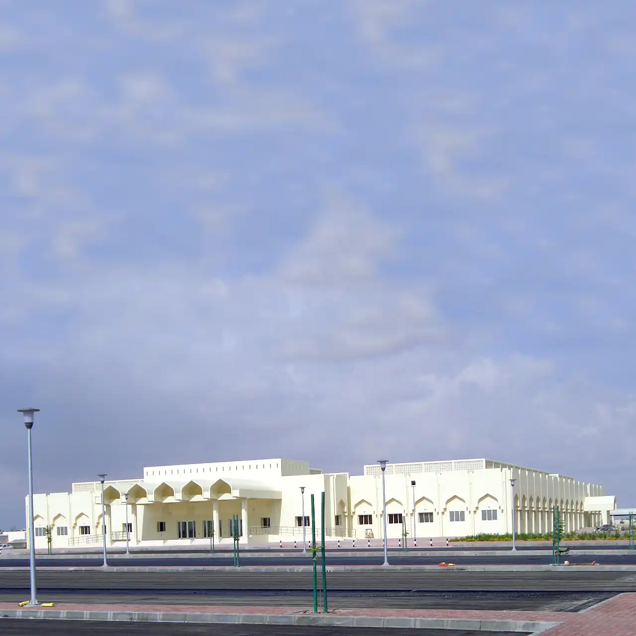 The four tertiary care centers/extended health centers, along with the Medical Institute and Multispecialty Clinics, have been designed with a similar edifice and planning. The design aims to facilitate the easy movement of patients and ensure clear segregation of circulation for each clinic. The façade of the buildings incorporates traditional Arabic architectural elements, such as pointed arches and deep-set windows, creating an articulated blend of traditional features. This architectural style not only adds visual appeal but also reflects the local cultural context.