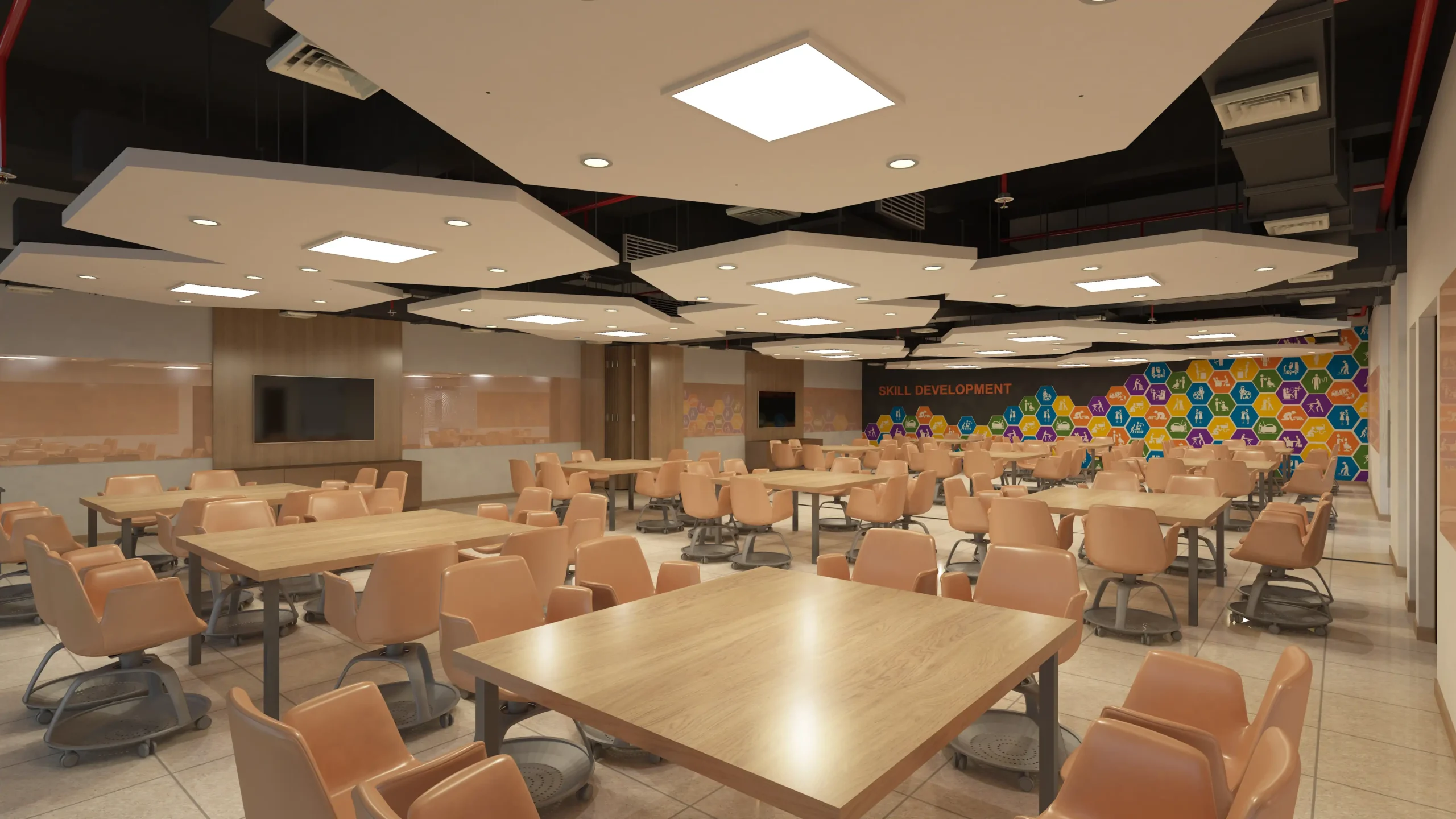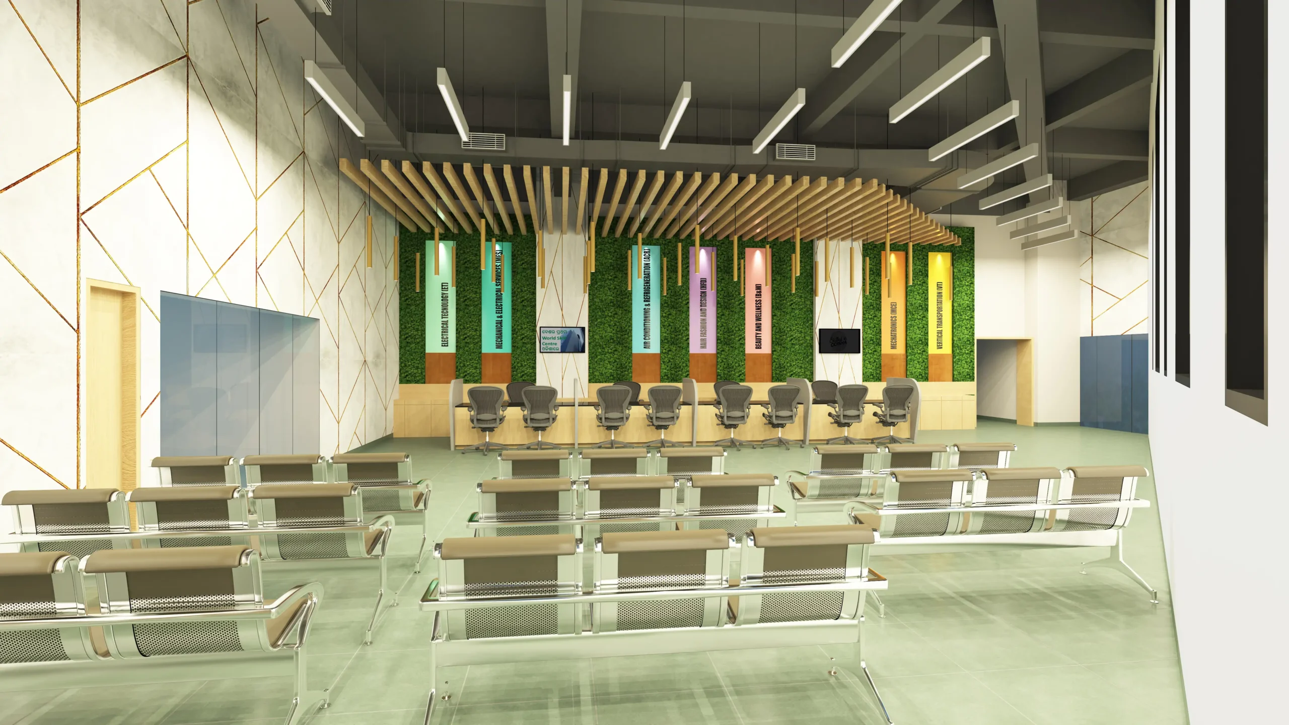 The 18-storey building was refurbished for the World Skilled Center (WSC), an institute promoting skilled education in Odisha. The interior design focused on creating a strong identity, flexible spaces, connectivity, and collaborative learning environments. Universal design principles were applied for inclusivity. The goal was to establish a modern and functional space that reflects the institute’s mission and provides a supportive learning environment for 3000 students in various skill development courses.